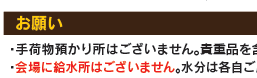 <訂正>参加通知書(ハガキ)の裏面、「荒天時の開催について」にて、その場合開催の有無は2月2日の午前7時までに決定し、と明記しておりますが2月1日の午前7時の間違いです。大変申し訳ございませんでした。また「お願い」にて、会場には給水所はございません、と明記しておりますが、コース場には給水所を設けておりませんが会場内で「水」「スポーツドリンク」「ホットレモン」などはご用意しております。走る前や走った後など各自適度に水分補給をお願い致します。